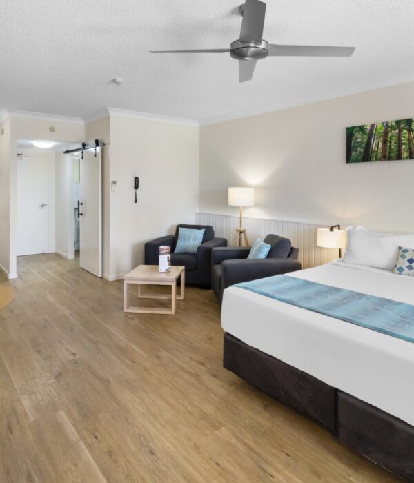 Breathe in the fresh sea breeze and relax in king-sized comfort with coastal-inspired accommodation, a balcony with poolside views, beachfront access to K'gari's World Heritage-listed locations and all the resort amenities at your fingertips.